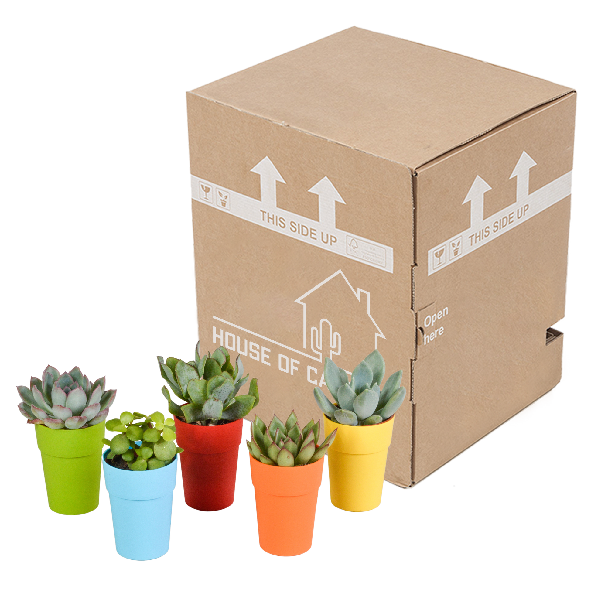 Vetplanten-Mischung 5,5 cm - 5x - in gekleurde plasticpot